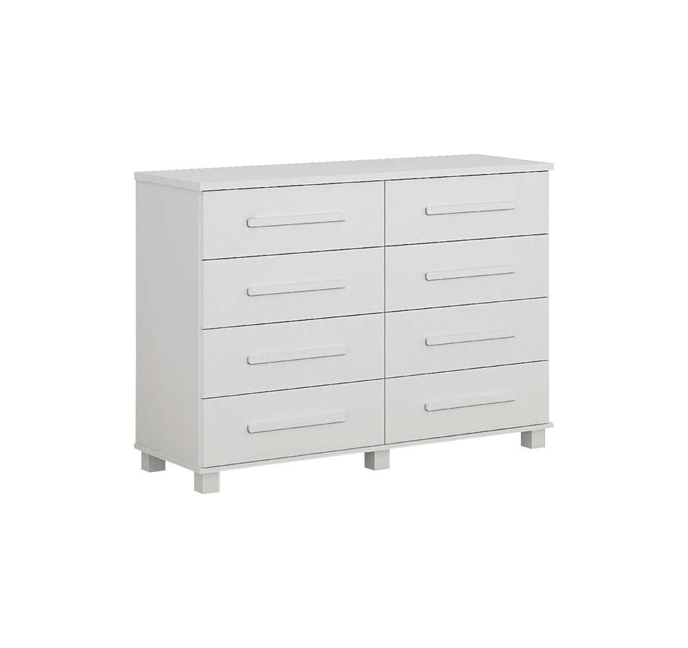 A Cômoda San Marino é ideal para quem busca amplo espaço interno aliado a um design clean e elegante. Com linhas retas e acabamento versátil, ela se adapta facilmente a diferentes estilos de dormitório, proporcionando organização e praticidade no dia a dia.