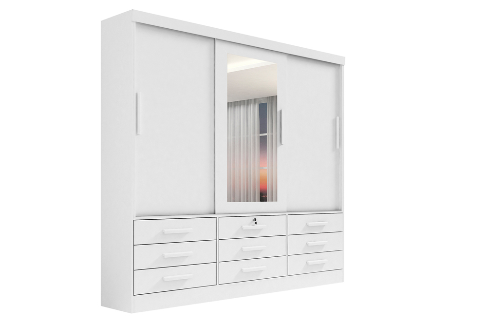 Renove o seu quarto com estilo e funcionalidade usando o Guarda Roupa de Solteiro Meridian. Com seu design elegante e espaçoso, este guarda-roupa é perfeito para armazenar suas roupas de forma organizada e prática. Com suas 3 portas de correr, o Guarda Roupa Meridian oferece fácil acesso ao interior do móvel, economizando espaço no ambiente. As portas, a moldura e as frentes das gavetas são feitas em MDF, garantindo durabilidade e um acabamento sofisticado. As 9 gavetas deslizam suavemente graças às corrediças telescópicas de 40cm, proporcionando abertura total para facilitar o armazenamento e a organização das suas roupas. Além disso, uma das gavetas possui chave, garantindo a segurança dos seus itens mais preciosos. O Guarda Roupa Meridian é produzido com chapa de 15mm, garantindo resistência e estabilidade ao móvel. O suporte cabide metálico e o cabideiro em alumínio oferecem amplo espaço para pendurar suas roupas, mantendo-as sempre impecáveis. Para sua tranquilidade, o guarda-roupa possui trilhos antiquedas nas portas, garantindo um deslizamento suave e seguro. Assim, você pode desfrutar da praticidade e do conforto deste guarda-roupa sem preocupações. Renove seu quarto com o Guarda Roupa de Solteiro Meridian e desfrute de um ambiente elegante, organizado e funcional. Não deixe para depois, adquira agora mesmo o seu e transforme seu quarto em um espaço aconchegante e cheio de estilo. Dimensões: Altura: 218 cm Largura: 200 cm Profundidade: 52 cm Características: Modelo: Meridian Cor: Cinamomo Acabamento: Pintura UV Material: MDP/MDF Tipo de Porta: Correr Número de Portas: 03 Material do Puxador da Porta: Madeira Possui Espelho: Sim Número de Gavetas: 09 Tipo de Corrediça da Gaveta: Telescópica Material da Gaveta: MDP/MDF Distanciador da Gaveta: MDP/MDF Número de Prateleiras: 04 Material da Prateleira: MDP/MDF Números de Cabideiros: 03 Material do Cabideiro: Alumínio Possui Pés: Não Peso do Produto: 163kg Garantia: 90 Dias ( Contra Defeito de Fabricação) Montagem: Recomendamos que a montagem seja feita por um profissional de sua confiança; Instruçoes/Cuidados: Limpar com pano seco ou levemente umidecido; Informações: Os Objetos que ambientam as fotos não acompanham o produto.