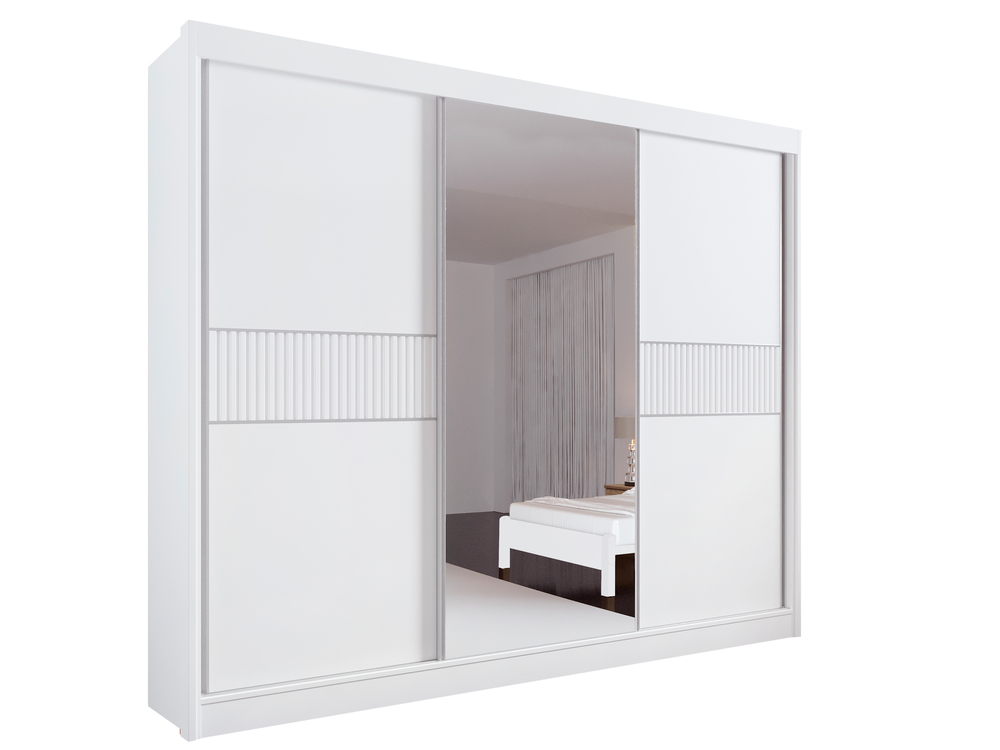 Guarda Roupa Casal Ripado com Espelho sem pés Los Angeles 3 Portas 6 Gavetas - D' Doro