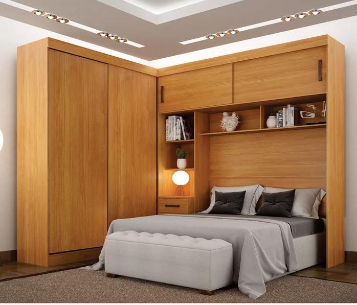 Guarda Roupa Casal Sparta com Cabeceira Queen Sem Espelho 4 Portas de Correr 3 Gavetas Leifer