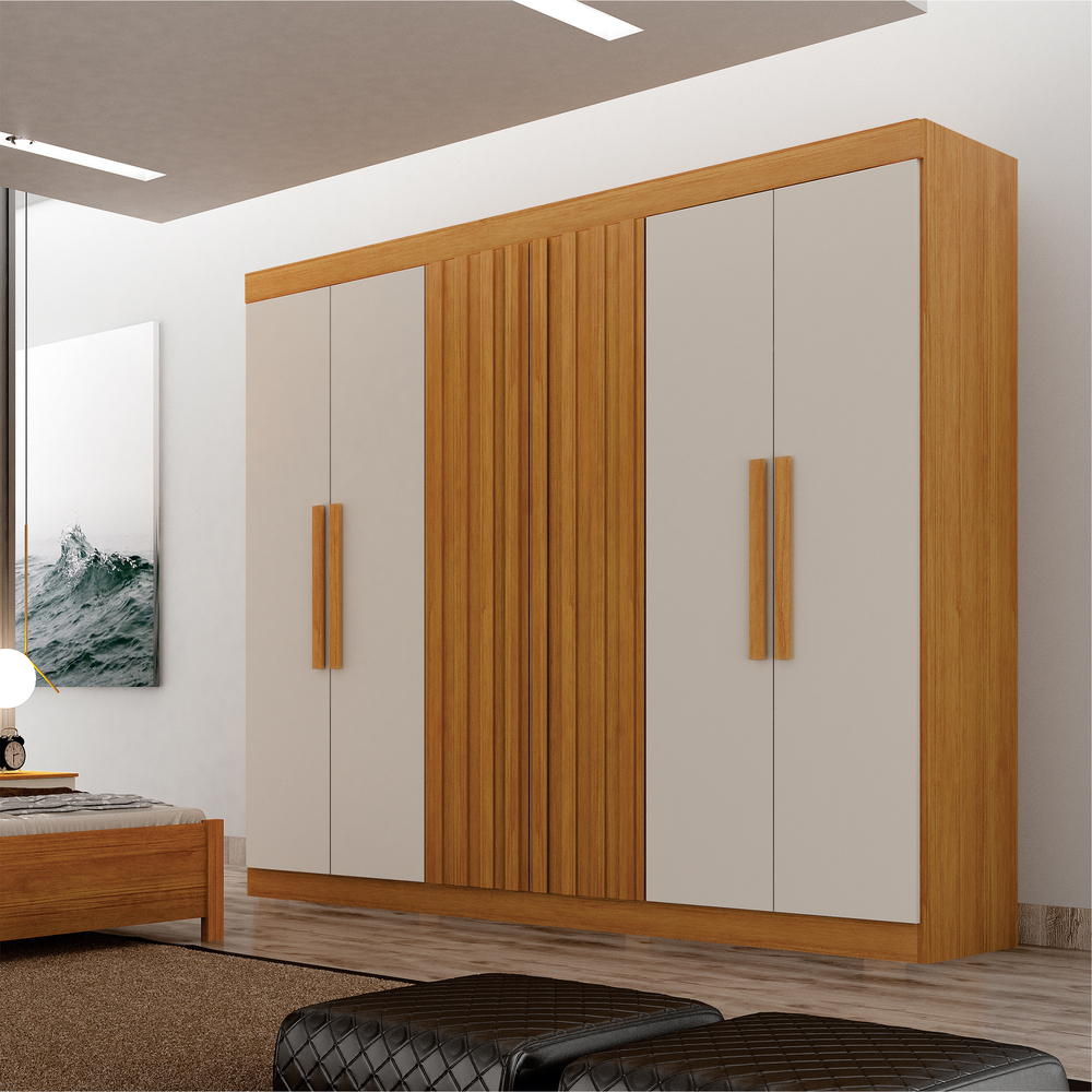 Produto: Roupeiro Delta Altura: 2000 mm Largura: 1775 mm Profundidade: 465 mm Material: 100% MDF Cores disponíveis: Cinamomo / Cinamomo Off / Branco