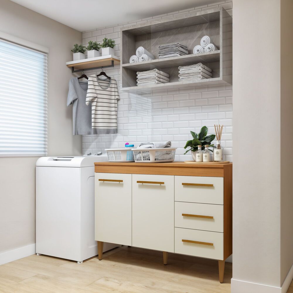Quais são os melhores armários para lavanderia pequena? Os melhores modelos são armários com prateleiras que otimizam espaço e ajudam a organizar produtos e utensílios de forma prática. Posso usá-lo como armário de cozinha? Claro, basta usar a criatividade e conseguirá usar em vários ambientes.