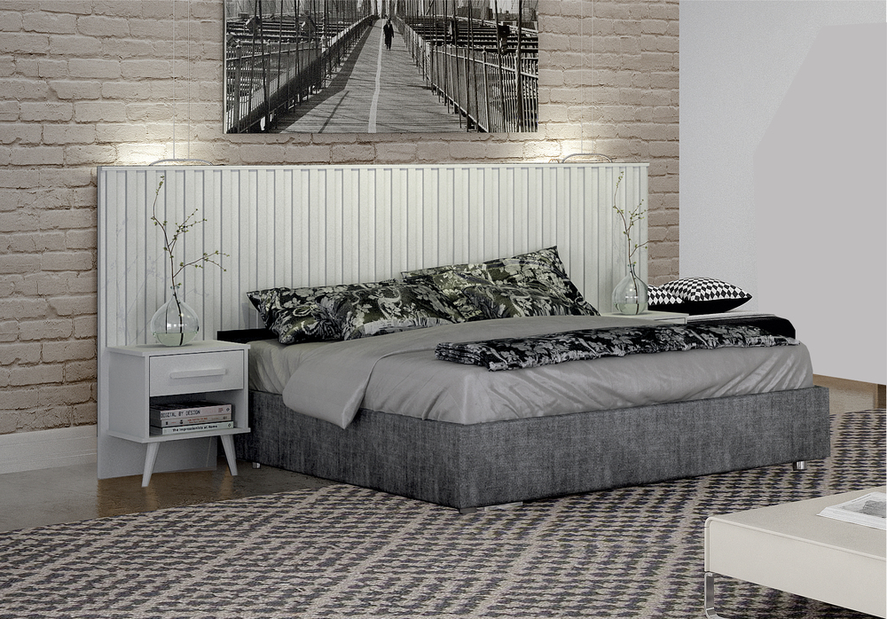 Painel com design ripado, moderno e elegante Criados-mudos integrados, mais praticidade no dia a dia Opção de fixação na parede Criados opcionais (possibilidade de configuração conforme necessidade) Ideal para compor dormitórios com estilo e funcionalidade