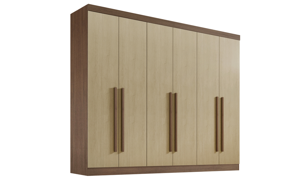 Roupeiro 100% MDF Produzido com Chapa de 15mm e 25mm; Acabamento externo pintura UV Escala de brilho alto brilho Quantidade de Gavetas 6 Material da gaveta MDP/MDF Corrediças da gaveta telescópica Material do puxador da gaveta alumínio Profundida da gaveta 40 cm Abertura total da gaveta Sim Peso máximo por gaveta 5 Kg Numero de portas 6 Material do puxador das portas madeira Número de prateleiras 8 Material das prateleiras MDP/MDF Peso máximo das prateleiras 5 kg Números de cabideiros 3
